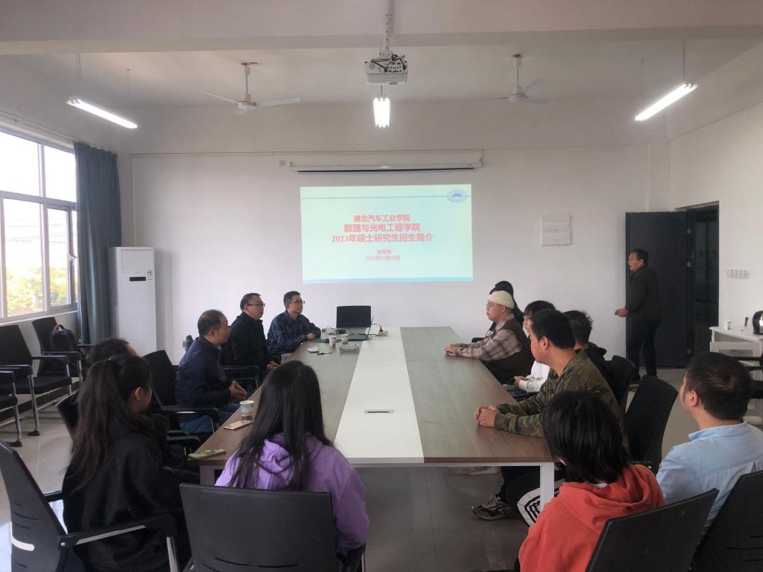 10月20日下午,湖北汽车工业学院数理与光电工程学院材料物理系张传坤、周原教授一行来球友会·千亿球友会(中国)官方网开展2023年硕士研究生招生宣讲。本次宣讲张传坤教授担任主讲。理工学部部分同学参加了此次宣讲会。