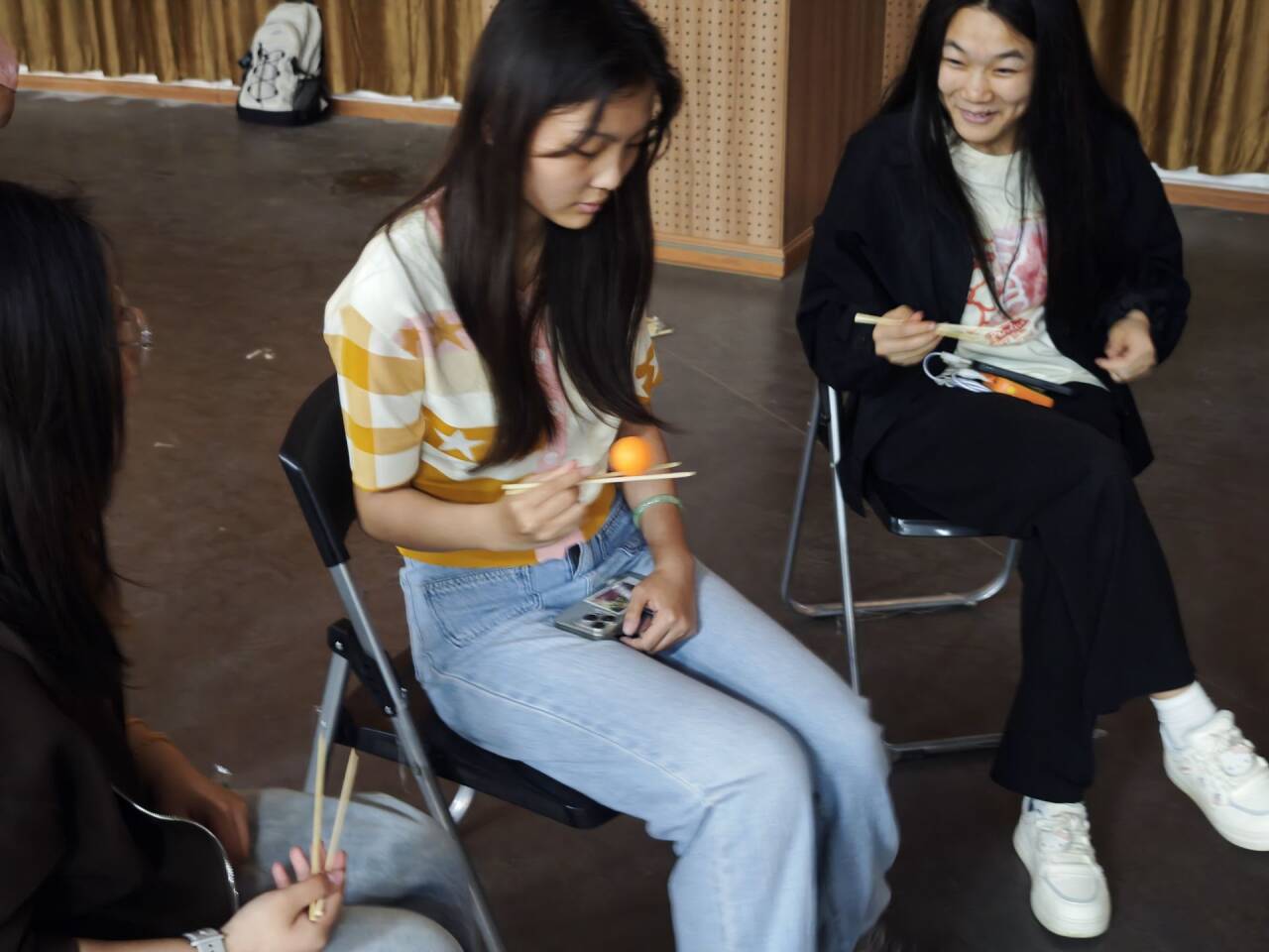 活动开始破冰游戏迅速点燃现场氛围,同学们在欢声笑语中打破陌生感。随后的“筷子球”环节,老师们也加入挑战,与同学们默契配合,展现了亦师亦友的亲密互动。“气球保卫战”和“抢凳子”游戏更是将气氛推向高潮,大家在竞技中学会协作,在欢笑中释放压力。“拍卖会”环节别出心裁,同学们通过虚拟竞拍分享自己的价值观和人生目标,而“听歌识曲”则让音乐成为情感的纽带,引发共鸣。活动现场气氛热烈欢快,同学们在轻松有趣的游戏中逐渐卸下压力,整个音乐厅充满了活力与温暖,活动氛围融洽,大家在欢声笑语中真正实现了放松身心、愉悦交流。