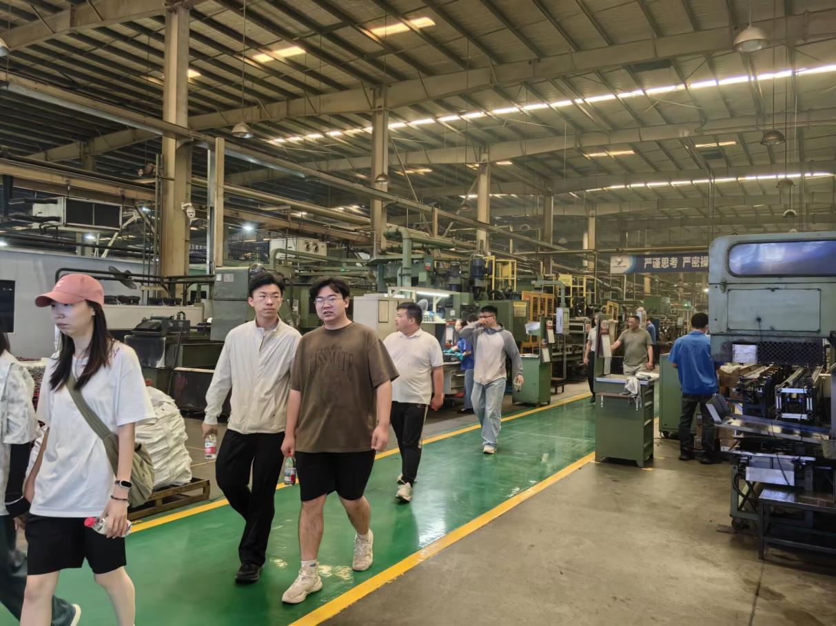 在黄石东贝电器股份有限公司智能制造基地,学生们实地观摩了全球领先的变频压缩机数字化生产线,讲解员系统讲解了永磁同步电机控制技术、智能检测系统等专业知识的工业应用场景,并观看了公司发展历程、目前成就及后续发展规划的视频在东贝制冷有限公司,师生不仅探访了新一代环保冷媒应用实验室,更深入冰淇淋机智能化生产车间,让学生了解课程中“智能制造与节能优化”的理论关联。