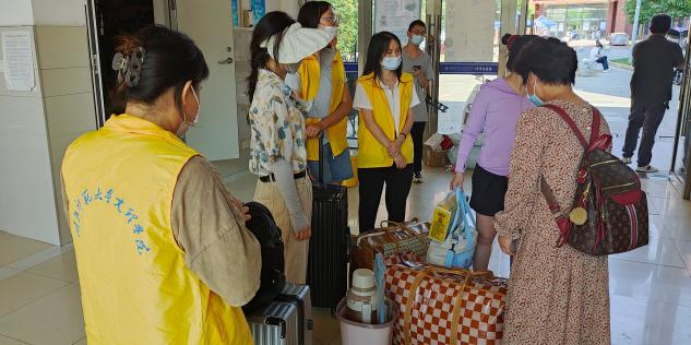 随着迎新工作的有序开展,人文学部的迎新工作人员及志愿者们各司其职,热情周到,帮助新生搬运行李,热心指路,引导他们快速办理入学手续。为方便新生们运送行李,学校特增加了专车为新生提供专门的运送服务。在师生的共同努力之下,截止到2022年9月12日下午5点,人文学部2022级全日制专科本科新生报到人数达到576人,还有部分新生后续来校报到。