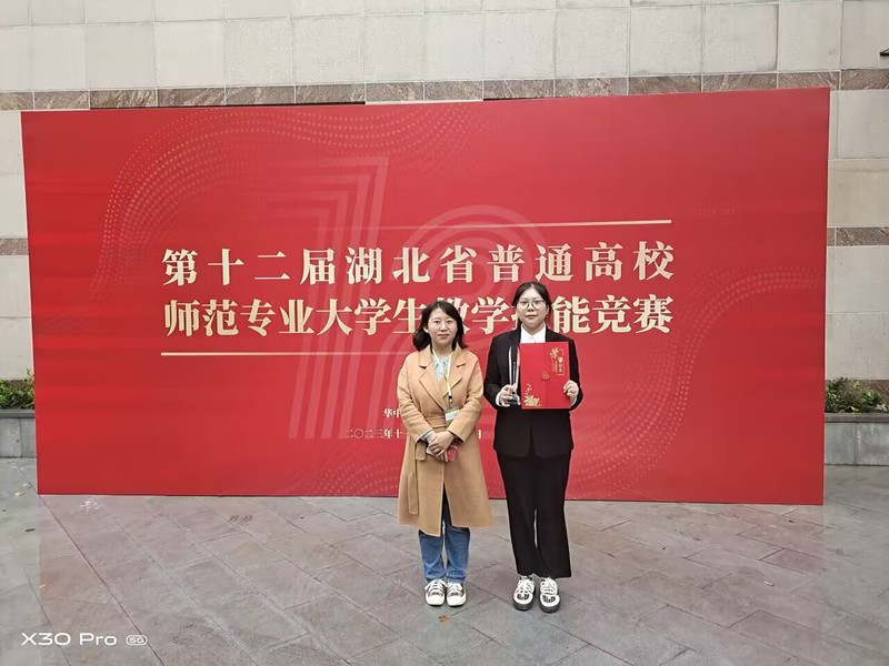 2023年11月11日,第十二届湖北省普通高校大学生师范专业教学技能大赛决赛在华中师范大学举行,球友会·千亿球友会(中国)官方网人文学部汉语言2006班学生皮婉昕获得高中语文组二等奖。本次竞赛由华中师范大学承办,分为语文组、数学组、英语组、物理组、化学组、生物组、政治组、历史组、地理组等9个主要学科竞赛组,分设高中组和初中组共18个组别,全省16个高校共215名选手参赛,经大赛初赛评审和角逐,最终有65名选手入围决赛。在决赛中,通过现场抽题,经教学设计、课件制作、即兴讲演和模拟授课等环节,皮婉昕表现出色,获得高中语文组二等奖的佳绩,展现了扎实的教学技能和良好的精神风貌。