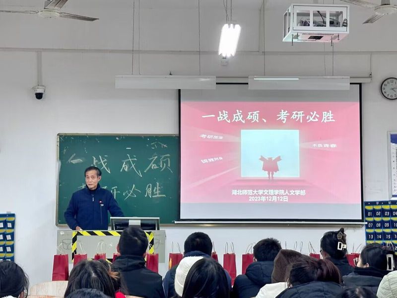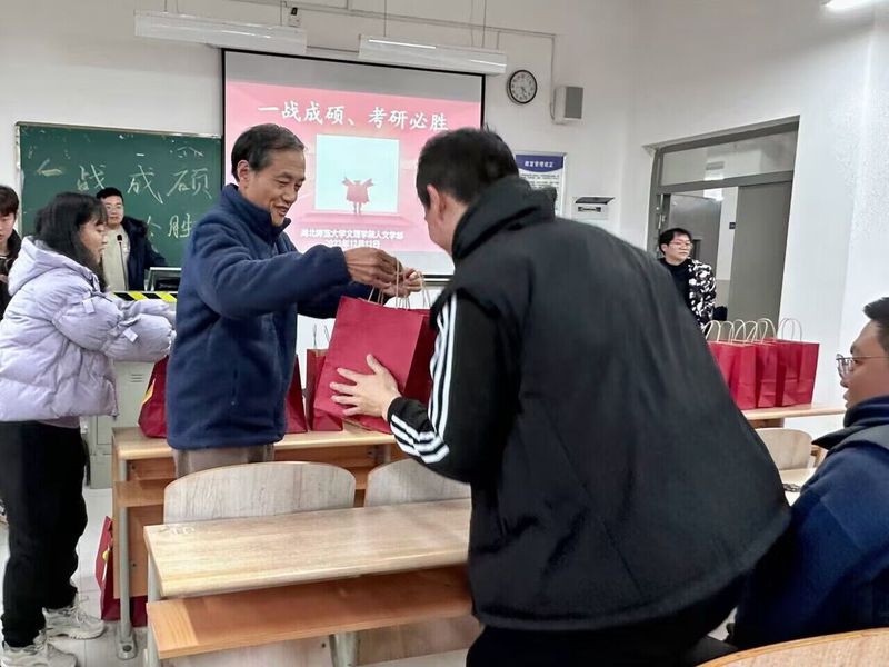 2023年12月12日下午16点,在人文学部党总支副书记汪玉宝老师的精心组织和安排下,人文学部在2A402教室举行了以“一战成硕,考研必胜”为主题的考研慰问活动。活动旨在让考研学子感受到“人文”特色的关心与支持,减轻他们的压力,并激发他们积极备考的动力。