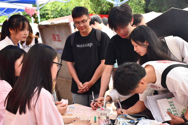 紫薇盛放映诗意,翰墨飘香润心田。活动不仅展现了紫薇花的美丽与文化魅力,更通过诗词的诵读、创作与赏析,让同学们深入体验传统文化的博大精深。活动一共分为词海拾贝、墨客追踪、诗宫探秘、飞花令四个游戏板块,通过每个环节的积分累计兑换精美定制的团扇、水杯等奖品,人文学部紫薇诗词文化节活动现场热闹非凡,吸引师生们伫足,诗词爱好者齐聚一堂。
