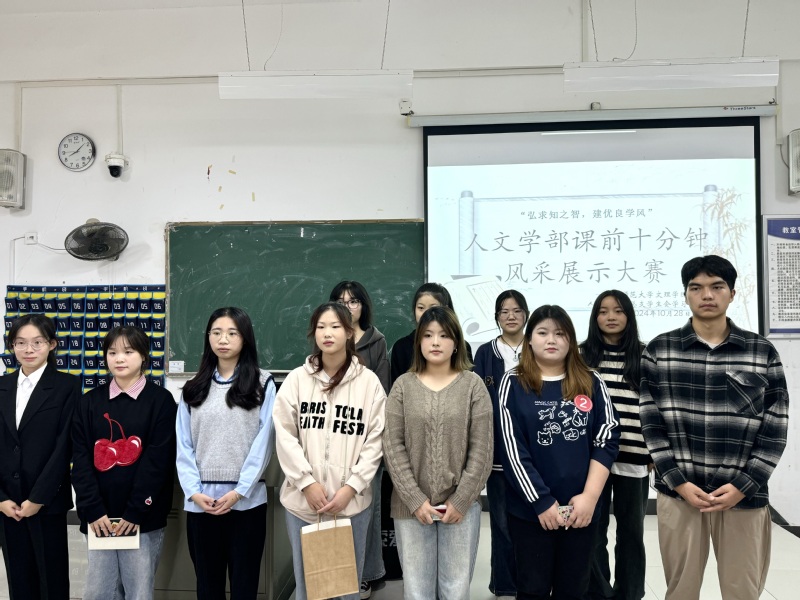 为深入推进课前十分钟主题活动的开展,人文学部组织团学于2024年10月28日19时——20时30分在2A304教室举行了“弘求知之智,建优良学风”课前十分钟风采展示大赛。