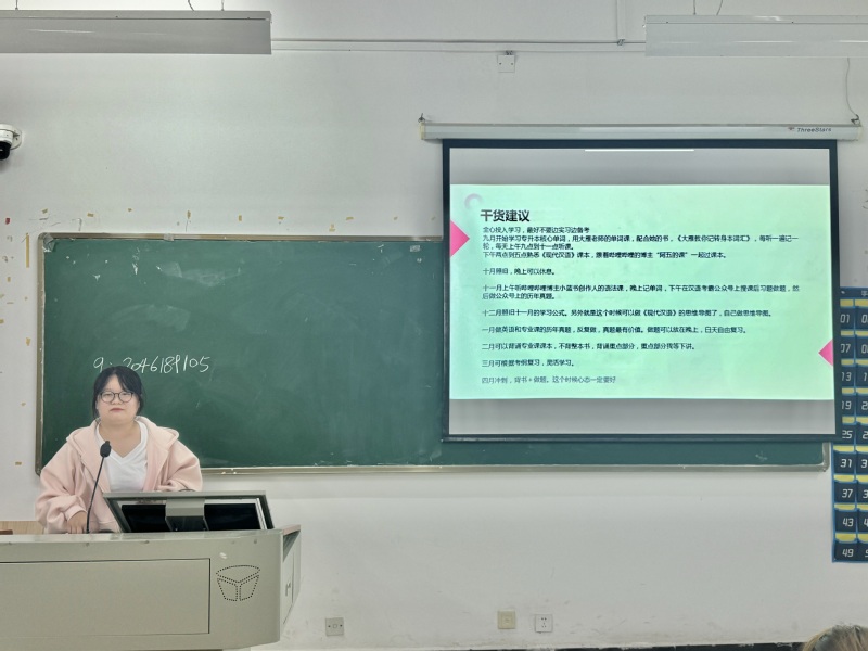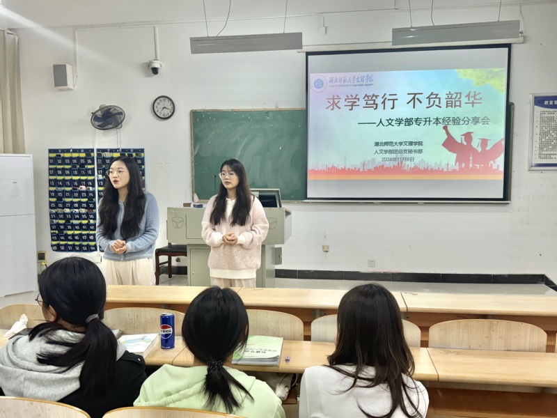 为了让同学们对专升本考试有更加充分的认识和了解,掌握专升本的学习技巧,提高学习效率,解决在备考学习中出现的困惑,增强同学们专升本的信心和学习动力。人文学部秘书部在2024116日晚于2024级中文专业各班级晚自习教室举行以“求学笃行 不负韶华”为主题的专升本经验分享会。