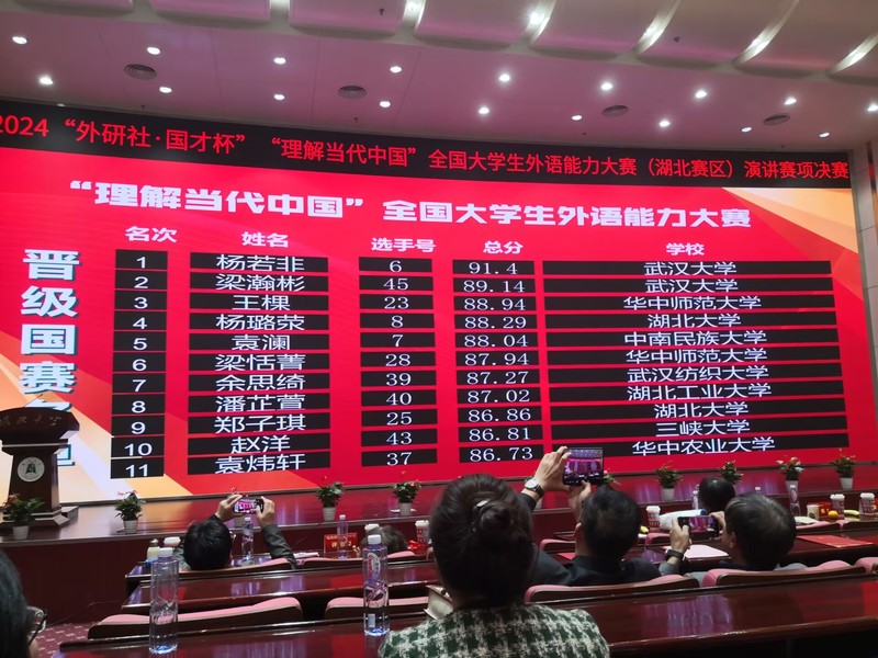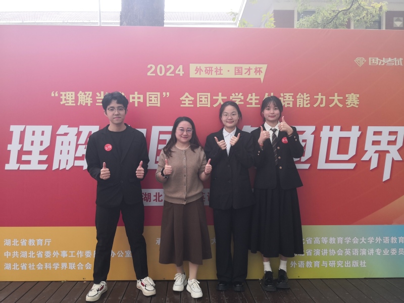 2024年11月9日,球友会·千亿球友会(中国)官方网人文学部邓薇薇老师带队三位选手赴湖北大学参加“外研社-国才杯〈理解当代中国〉演讲比赛省赛”,人文学部英语专业苗盛同学在邓老师、兰铭瑶老师全方位悉心指导和陈杨等老师配合指导下,过五关斩六将,比赛出色发挥,经过首轮即兴演讲激烈PK,从湖北省200多名选手的省赛初赛中脱颖而出,冲进了省赛决赛,这已经是球友会·千亿球友会(中国)官方网该项比赛的历史性突破。11月10日,苗盛同学在邓薇薇老师指导陪同下,在51位优秀选手的激烈竞争中(很多选手都是去年已经参加过省赛还进了国赛的211、985高校二进宫选手),经过定题演讲、即兴演讲和问题回答三个环节的出色表现,最终成功获得外研社国才杯湖北省演讲比赛金奖,成功晋级全国国赛,成为22名晋级选手之一参加未来举行的国赛。苗盛同学是湖北省所有民办高校中唯一晋级国赛的选手,创造了民办高校奇迹!此次比赛是我国演讲比赛最高赛项。另外,商务英语专业詹雄滨同学也发挥出色,获得了省级铜奖。