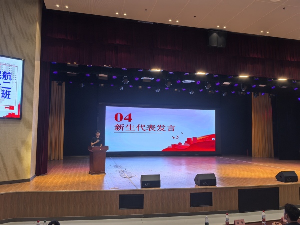 在学生代表发言环节,老生代表郑雅佩以“过来人”的身份分享经验,“刚入学时我也会迷茫,但跟着老师做项目、和同学组队参加竞赛后,慢慢找到了方向。”他从“突破自我、敢想敢做”的学习方法,到“勇敢开始、坚持到底”的行动准则,再到“在热闹中成长,在独行中沉淀”的实用建议。毫无保留地倾囊相授,温暖的话语让新生们倍感安心。新生代表王瑜诚则带着青涩与朝气上台,用铿锵的誓言道出全体新生的心声:“我们将在智能交通领域找准自己的位置,不负青春、不负学院期望。”真挚的发言赢得全场师生热烈掌声。